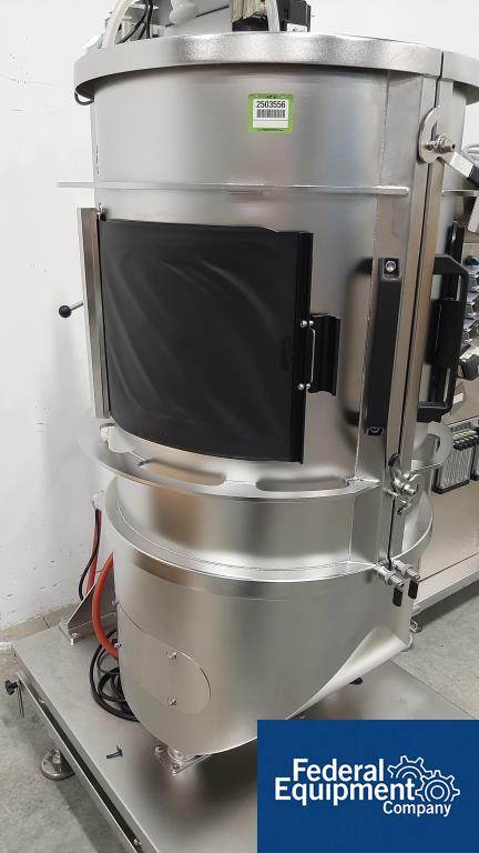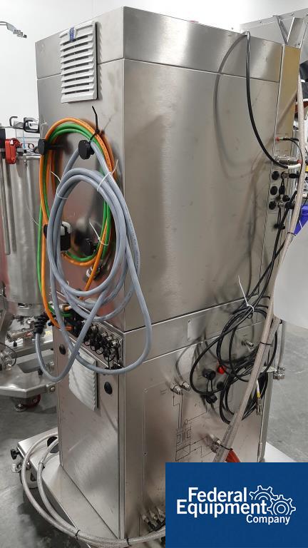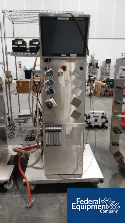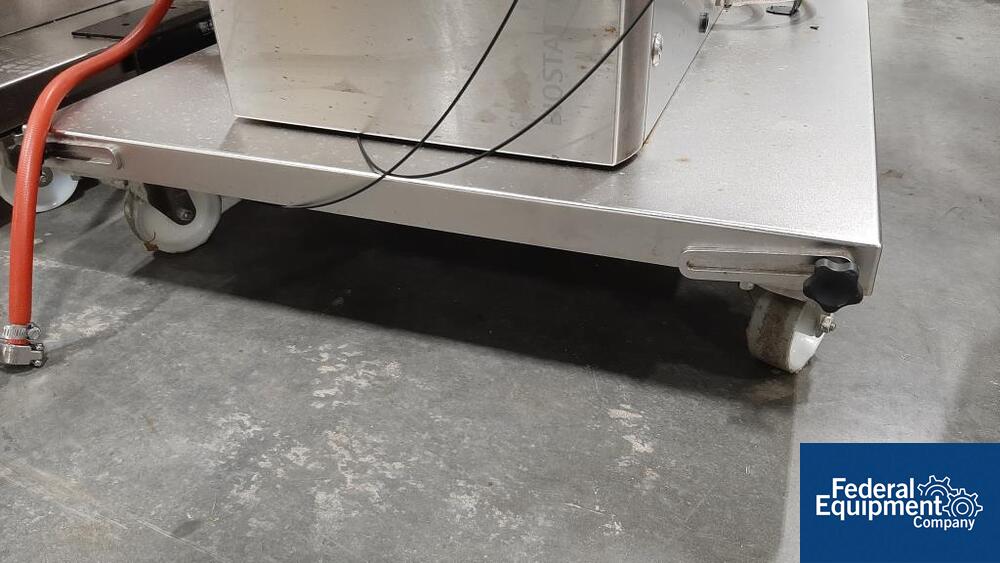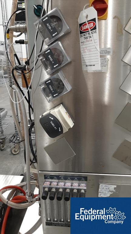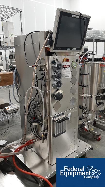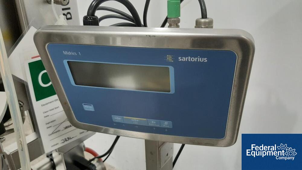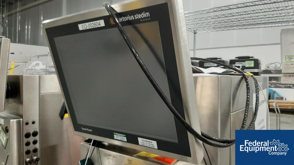 Used 200 liter Sartorius single-use jacketed bioreactor, model BIOSTAT CultiBag STR 200-DW. Includes Watson Marlow model 323 digital peristaltic pump, load cells with Sartorius model Midrics 1 display terminal, serial# STR 0583, built 2016, with Sartorius Stedim stirred single-use bioreactor touchscreen controller, model BIOSTAT CultiBag STR Plus. Includes (4) peristaltic heads, serial# 00716/16.