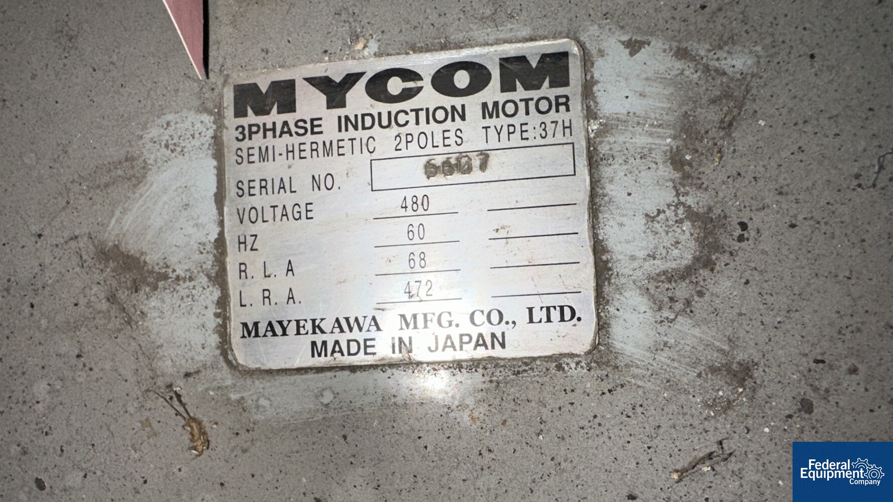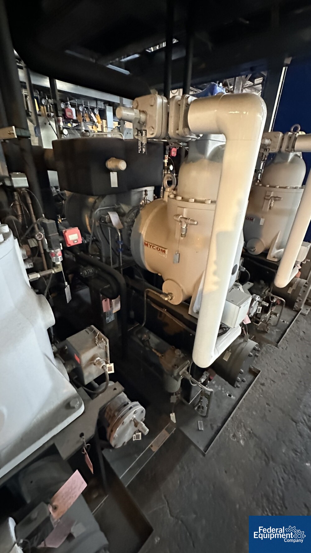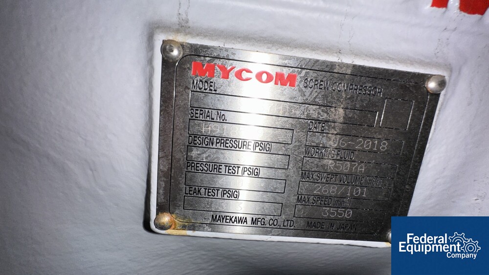 Unused IMA Life freeze dryer refrigeration skid package, sized for Lyomax 40 Freeze dryer, with (4) 50 hp Mycom compressors, model 37H1410SSCm R597A refrigerant, (4) fluid coolers for shelves, (4) fluid coolers for condenser, (1) electrically heated heat transfer fluid heater, skid mounted, built 2018.