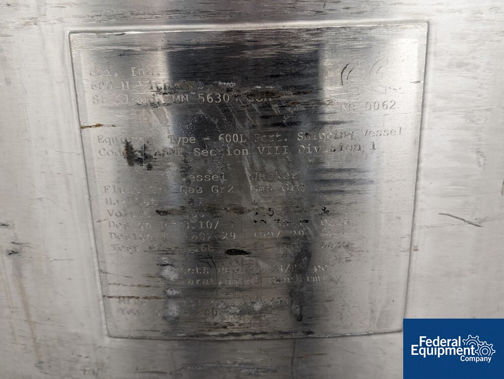 600 Liter DCI Jacketed Receiver Vessel, Hastelloy C22, 45/150#