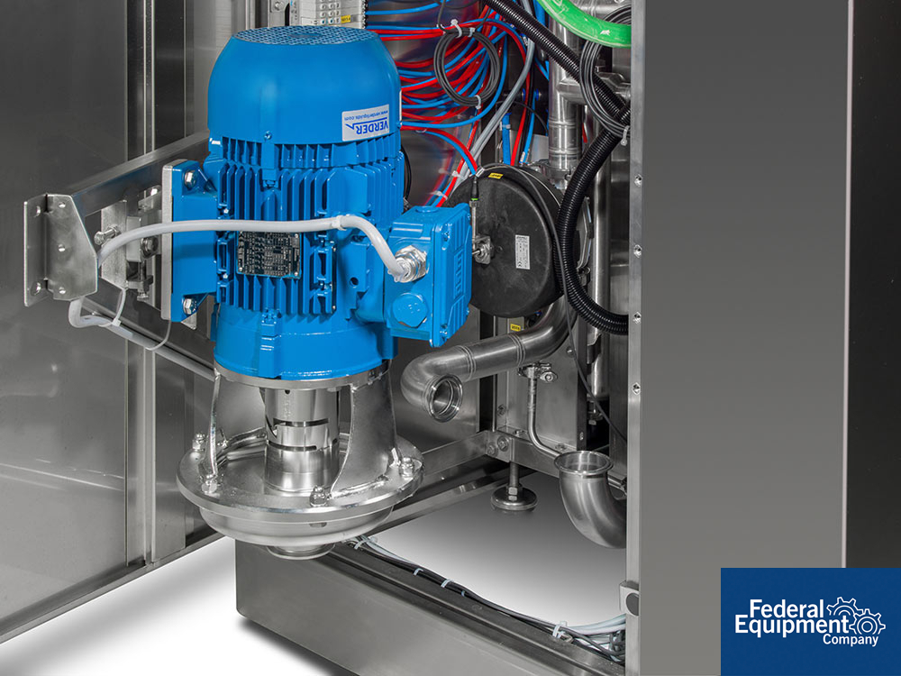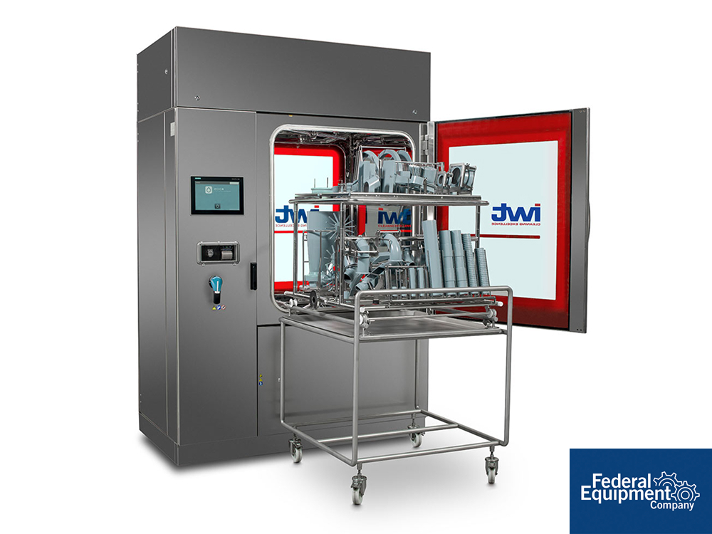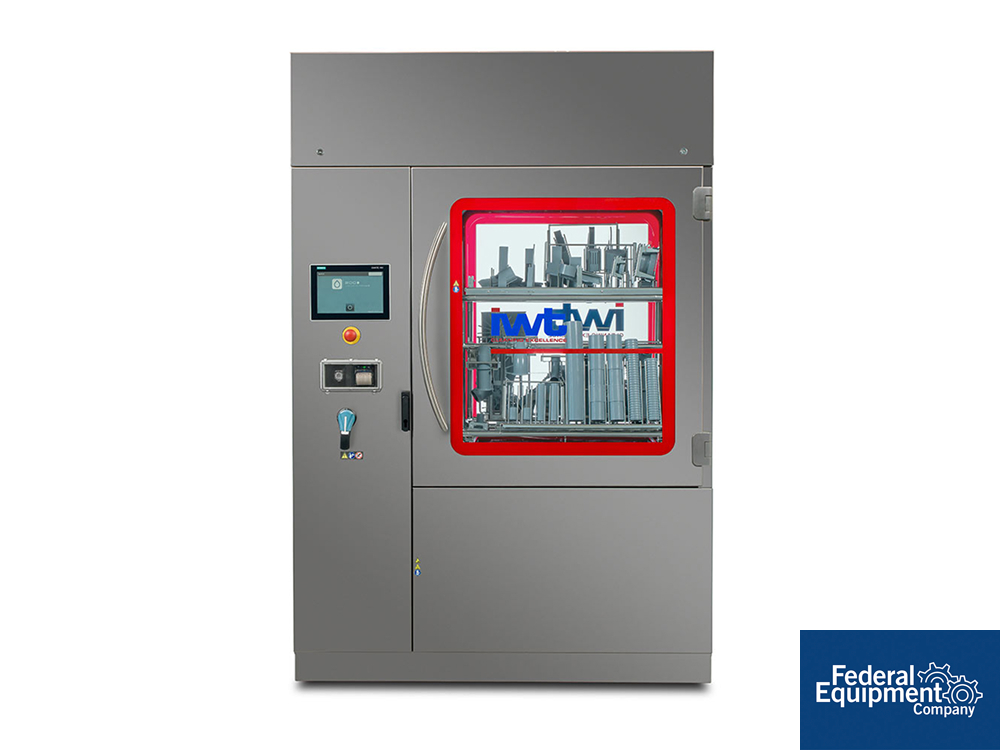 Brand new IWT cGMP compact parts washer, model 200EVO-060. The model 060 is a high-efficiency compact washer designed for precision cleaning in regulated environments. With a 21.2 ft³ (0.6 m³) chamber volume, it optimizes cleaning capacity while maintaining a small footprint of 12.9 ft² (~1.2 m²). The unit stands 8.2 ft (2,500 mm) tall, with a total volume of 105.8 ft³ (3 m³) and a 20% chamber-to-volume ratio, ensuring effective space utilization and thorough cleaning performance. Serial# 251139, built 2022. The unit is already packaged, and installation is included with the sale for seamless setup and operation.
