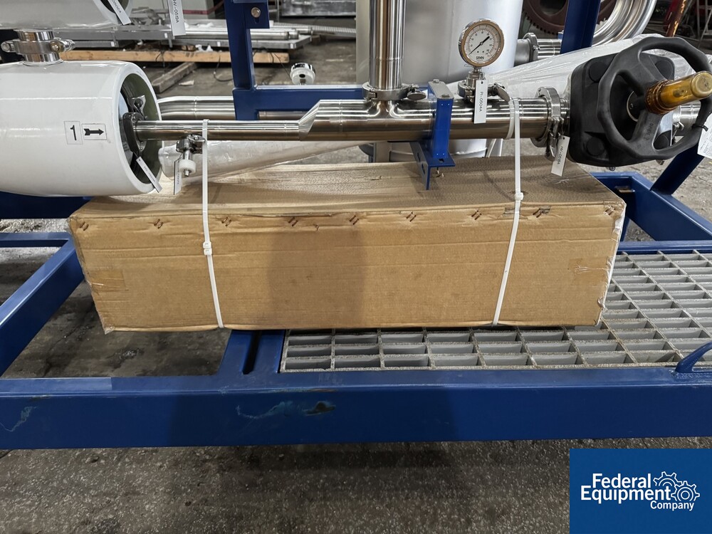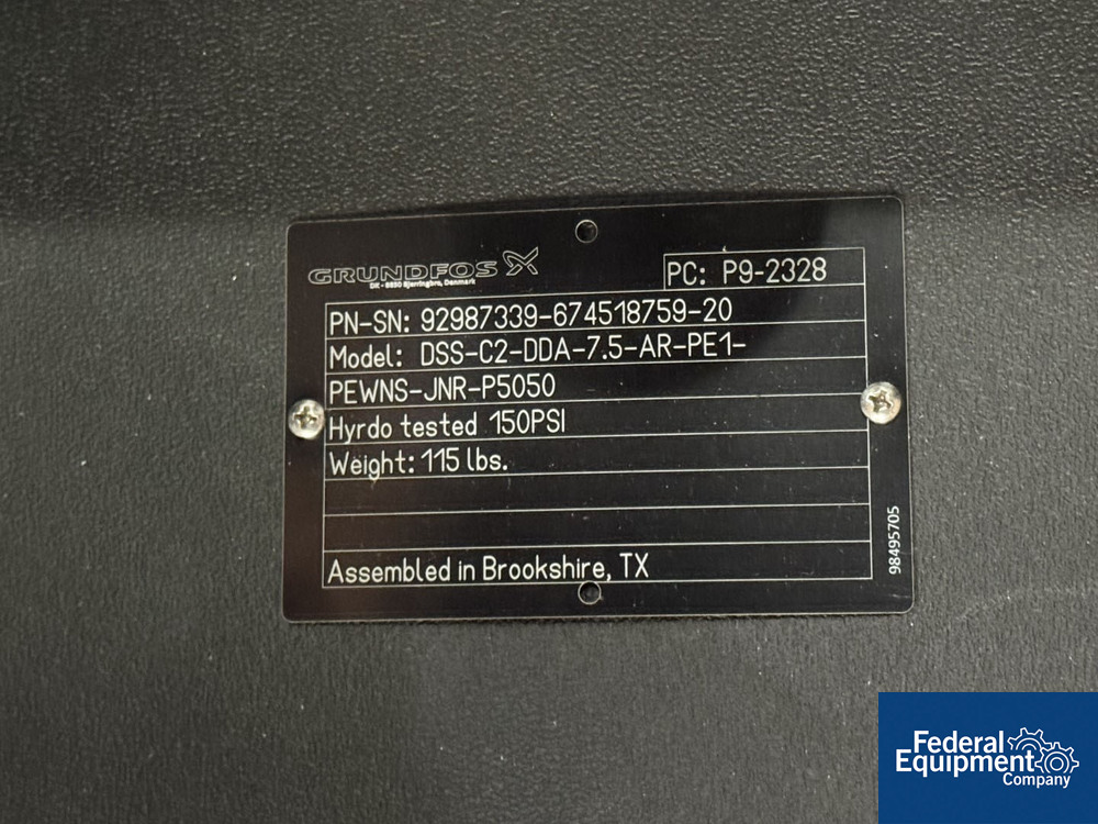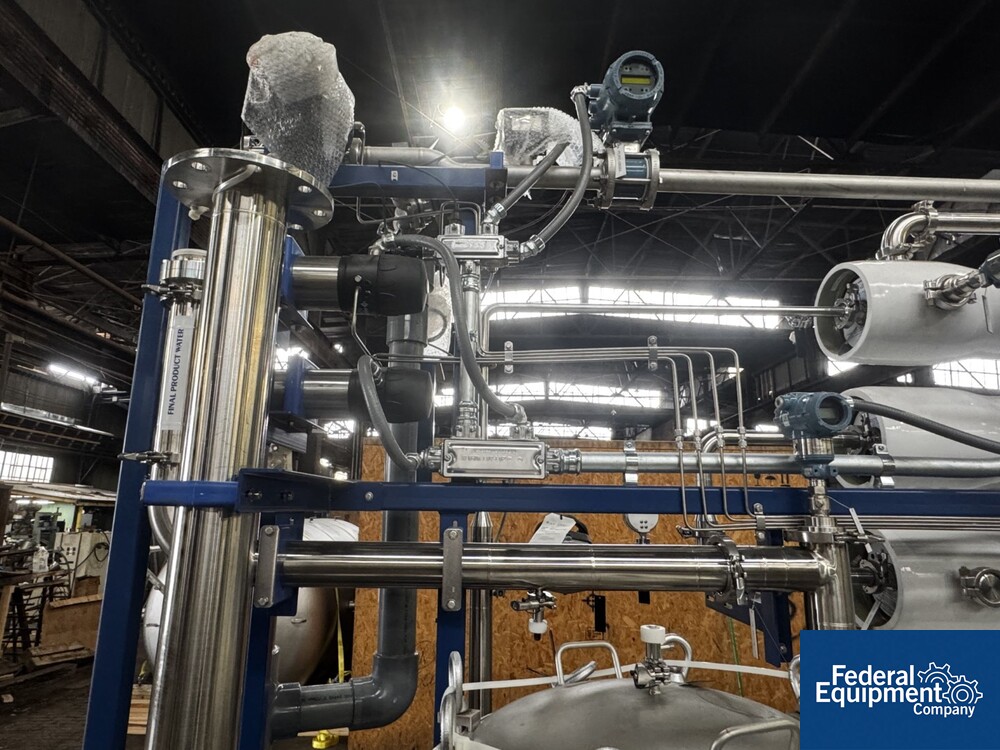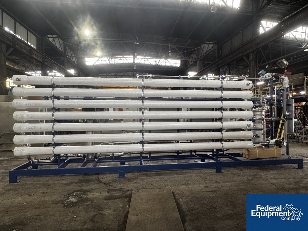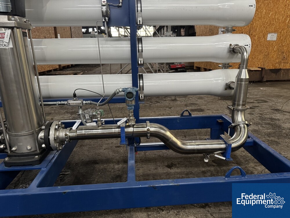 Used Evoqua Water Technologies RO/DI Water System, with (6) tube RO system, prefilter, 60 hp Grundfos pump, skid mounted with RIO Panel and power distribution panel, CDI continuous electrodeionization unit, (6) IonPure LX units, Carbon Tower bed, main control panel with HMI, serial# 10262039, built 2023.